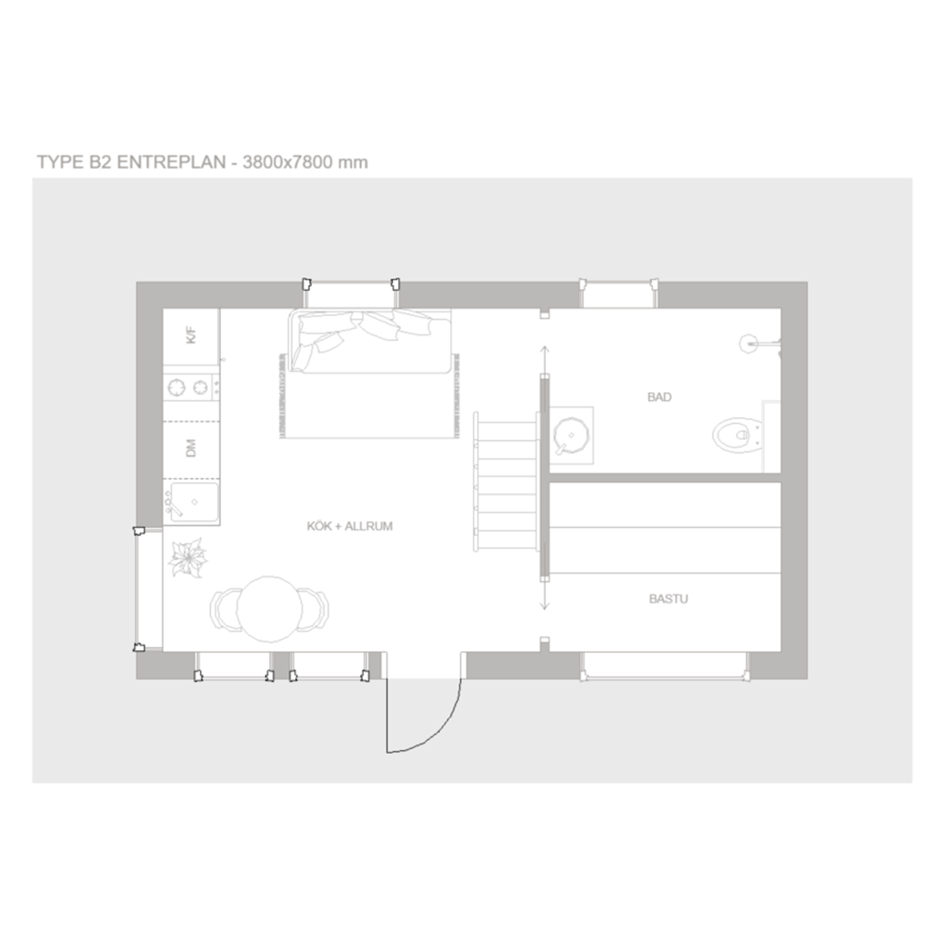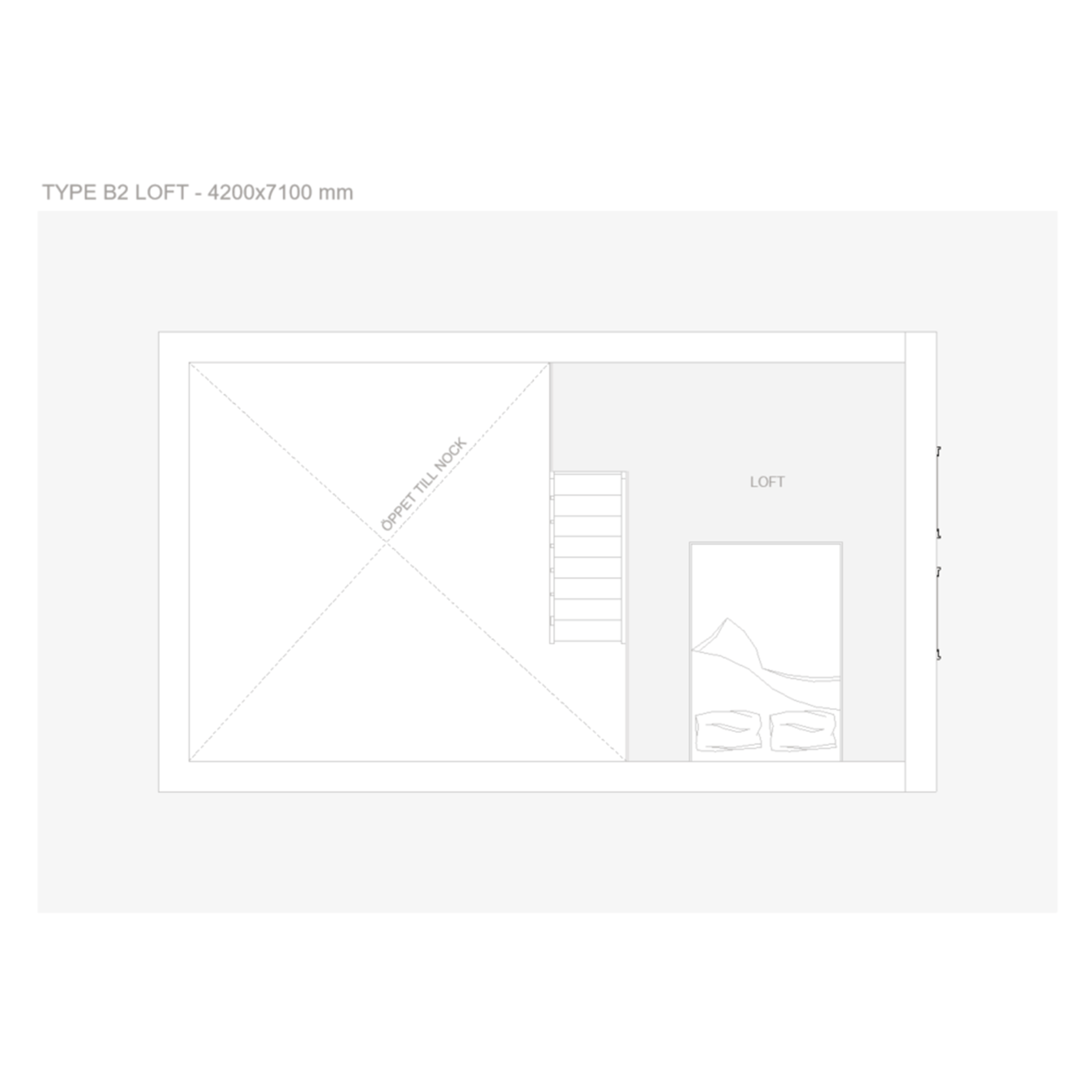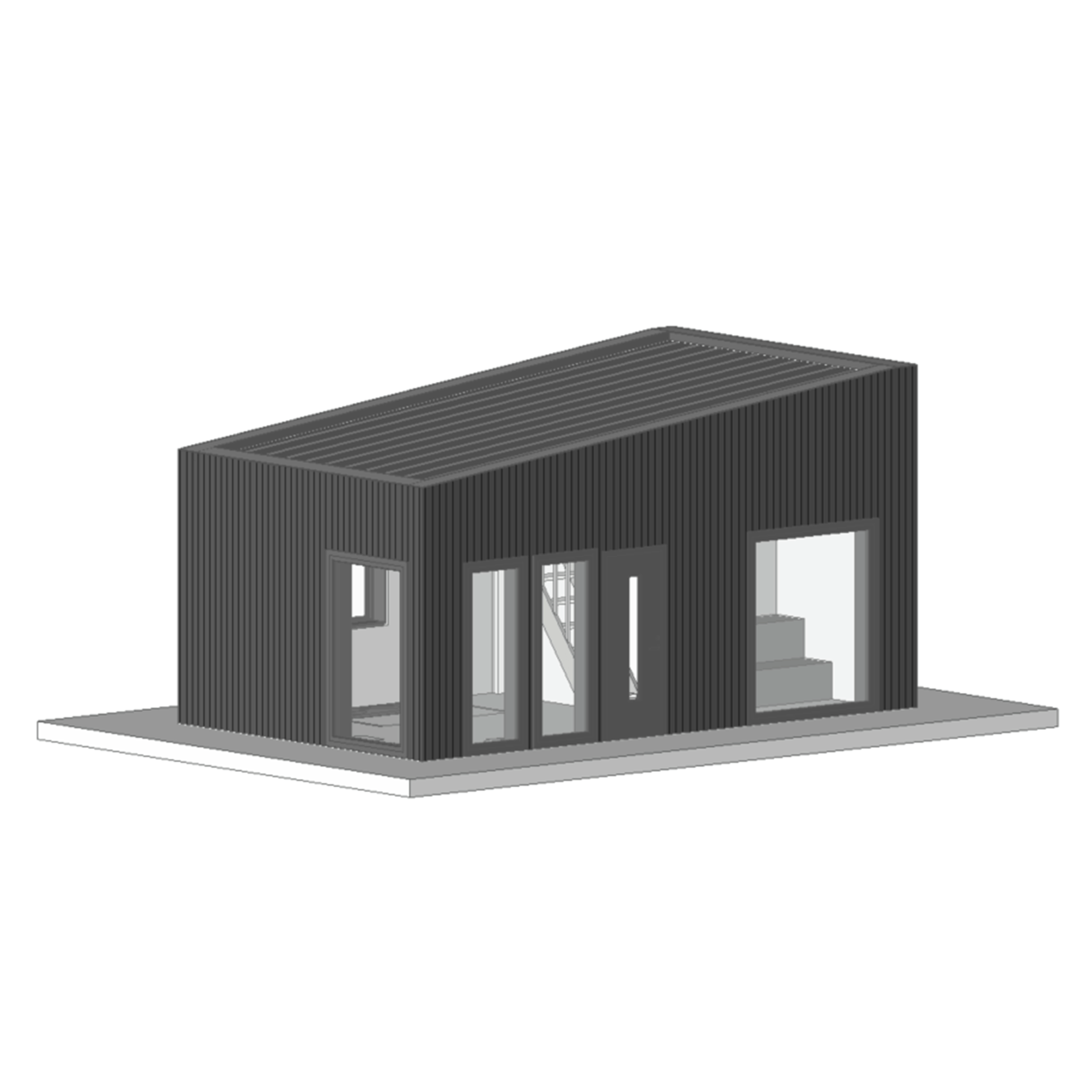 Vårt attefallshus Astrid är ett modernt hus med stora fönsterpartier. Fasaden är i stående träpanel och taket är ett pulpettak i papp och utan takfot. Inne i huset har du en boarea på 23.2 kvm och ett loft på 9.24 kvm. Huset kan nyttjas på flera olika sätt, tex som ett bastuhus med bastu, badrum och loungedel med kyl och vask, loftet kan du nyttja som sovdel för 1-2 personer. Eller så kan du nyttja huset som en studio, ateljé eller gästhus. (Vill du nyttja attefallshuset som ett permanentboende så är detta inte rätt hus för dig)