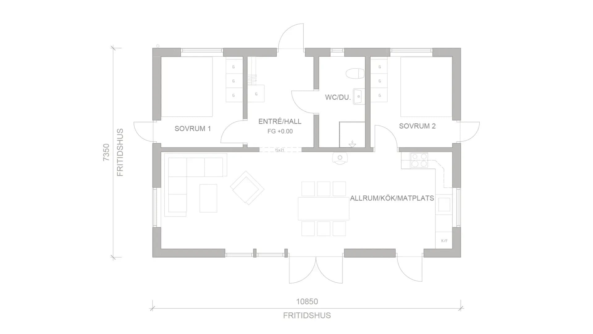 Med sina 69,39 kvm (BOA) är modellen Axel ett utmärkt alternativ för mindre familjer eller par som söker ett fritidshus med allt som behövs. De två sovrummen, ett rymligt vardagsrum och ett öppet kök ger gott om utrymme för socialt umgänge. Takhöjden på 4,3 meter och stora fönsterpartier skapar en ljus och rymlig känsla.