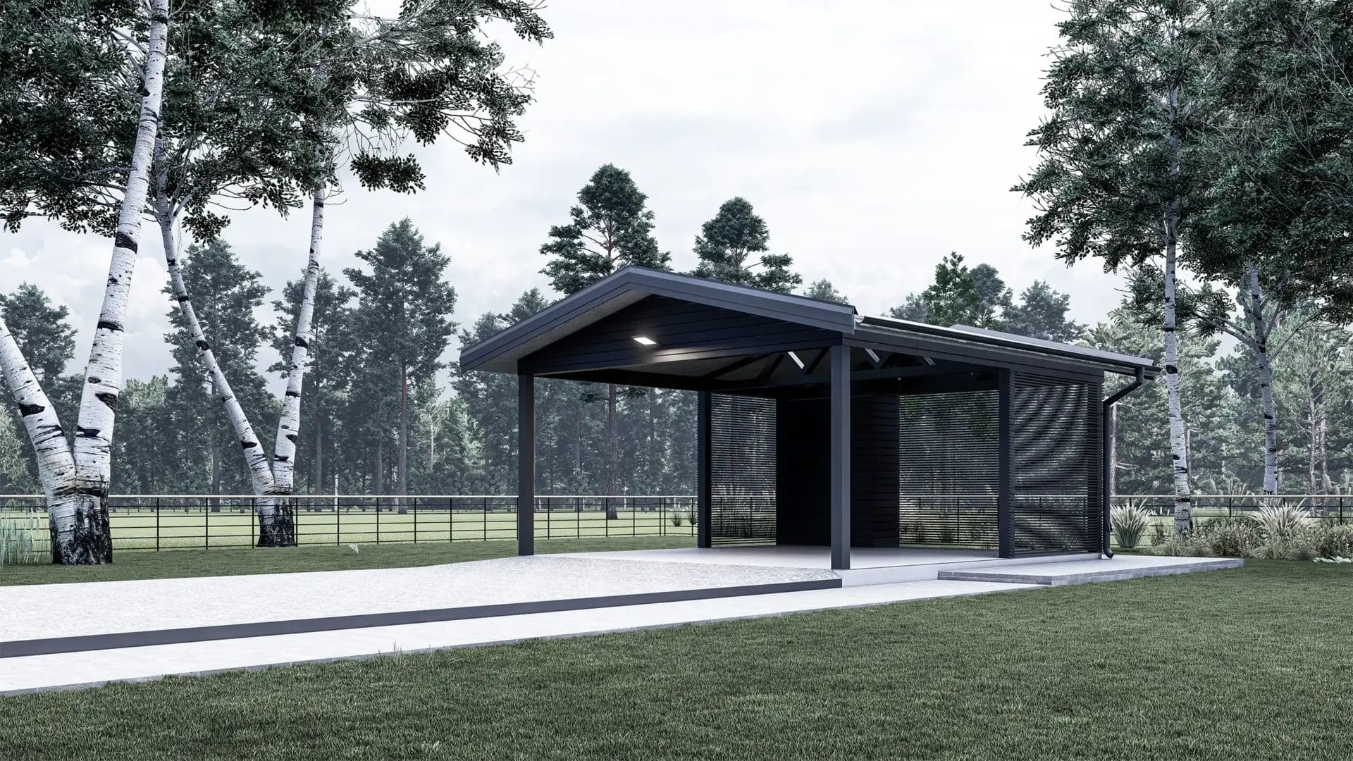 Carport Gustav erbjuder en perfekt kombination av modern design och praktisk funktion. Med sitt rymliga tak och robusta konstruktion är Carport Gustav idealisk för den som söker ett skyddat parkeringsutrymme för sina fordon. Det välvda taket och de rena linjerna ger ett stilrent intryck som passar både moderna och traditionella miljöer. Carporten är utformad för att ge gott om plats för en bil, med ett integrerat förråd som erbjuder extra förvaringsutrymme för verktyg eller trädgårdsutrustning. Den öppna strukturen ger enkel tillgång och ett luftigt utrymme, samtidigt som den skyddar fordonen mot väder och vind.