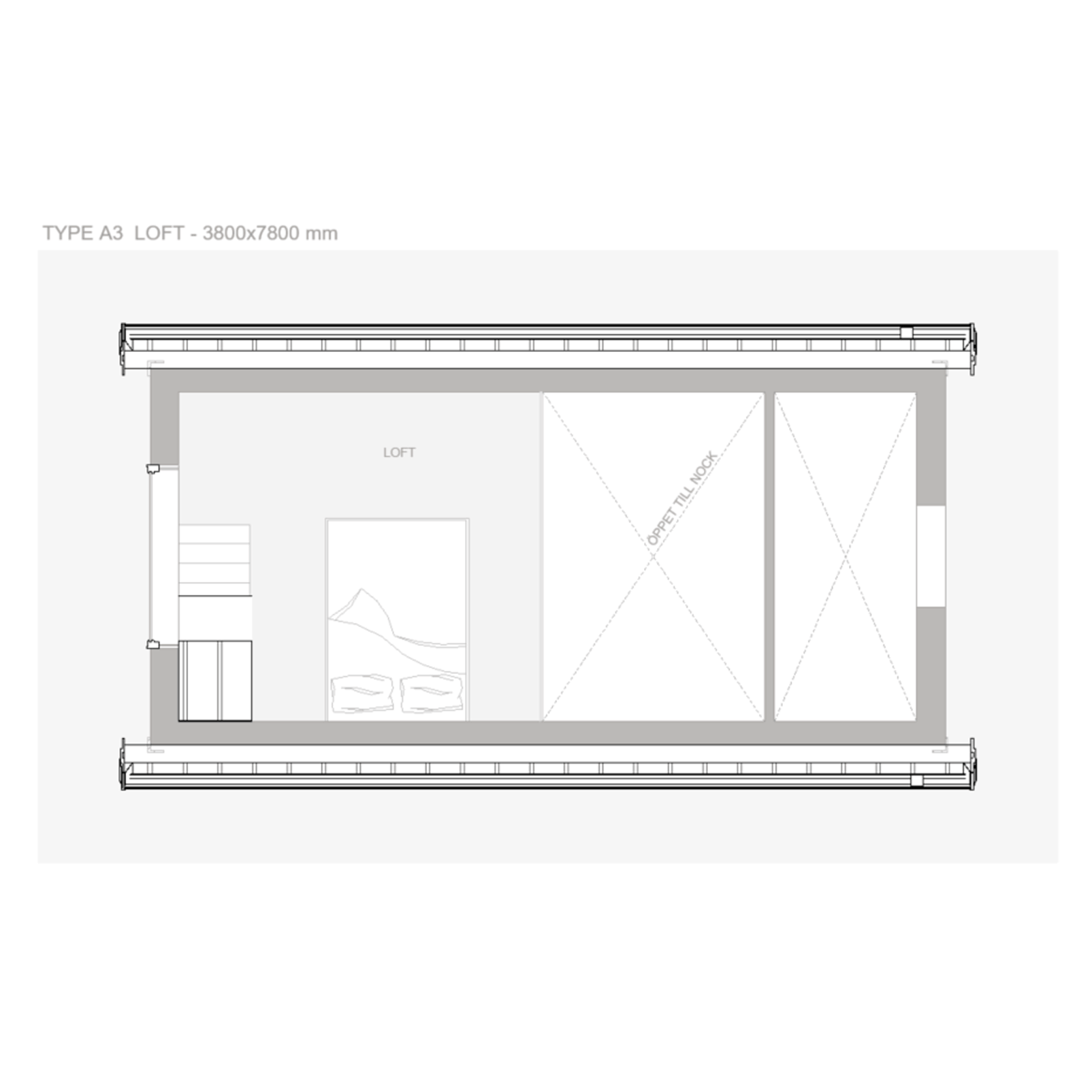 Attefallshuset Greta är har en klassisk stil med mansardtak och fönsterrutor med spröjs. Fasaden är i stående träpanel och takmaterialet är i plåt. Huset består av 3 rum, badrum, sovrum och allrum/kök.Sovrum och allrum/kök har öppet till nock och hall samt badrum har en rumshöjd på 2.1m. Huset har en boarea på 23.5 kvm och ett loft på 10.2 kvm. Sovrummet har plats för en 140 säng och i badrummet finns plats för tvättmaskin eller förvaring under trappan upp till loftet. Detta hus passar bra som gästhus, kontor, ateljé eller studio. (Vill du nyttja attefallshuset som ett permanentboende så är detta inte rätt hus för dig)