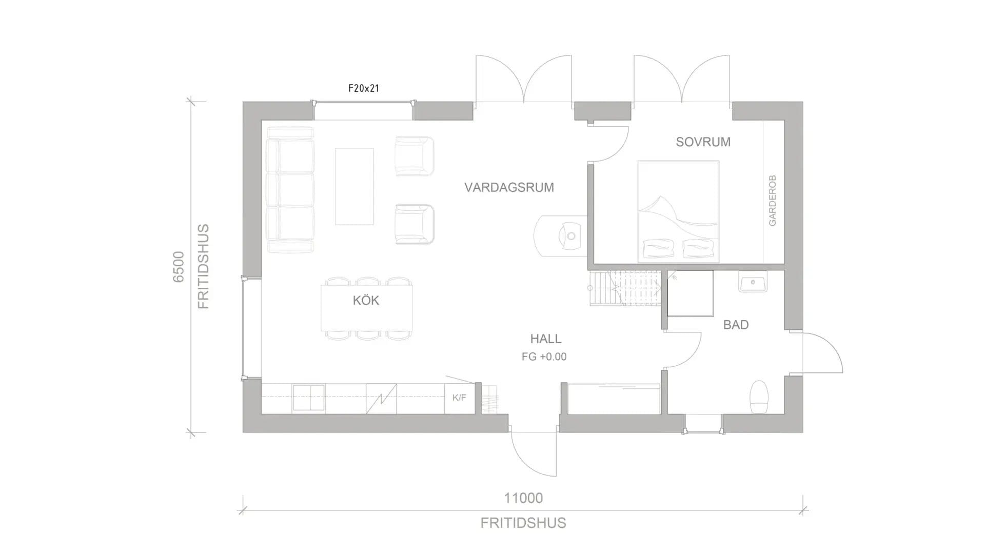 Modellen Hugo är ett kompakt fritidshus på 59,4 kvm (BOA) med en stilren design och smart planlösning. Huset har ett rymligt sovrum, öppet kök och vardagsrum som skapar en luftig känsla. Loftytan ger extra utrymme för förvaring eller gästrum. Med en nockhöjd på 5 meter känns huset större än det är, och de stora fönstren släpper in rikligt med naturligt ljus
