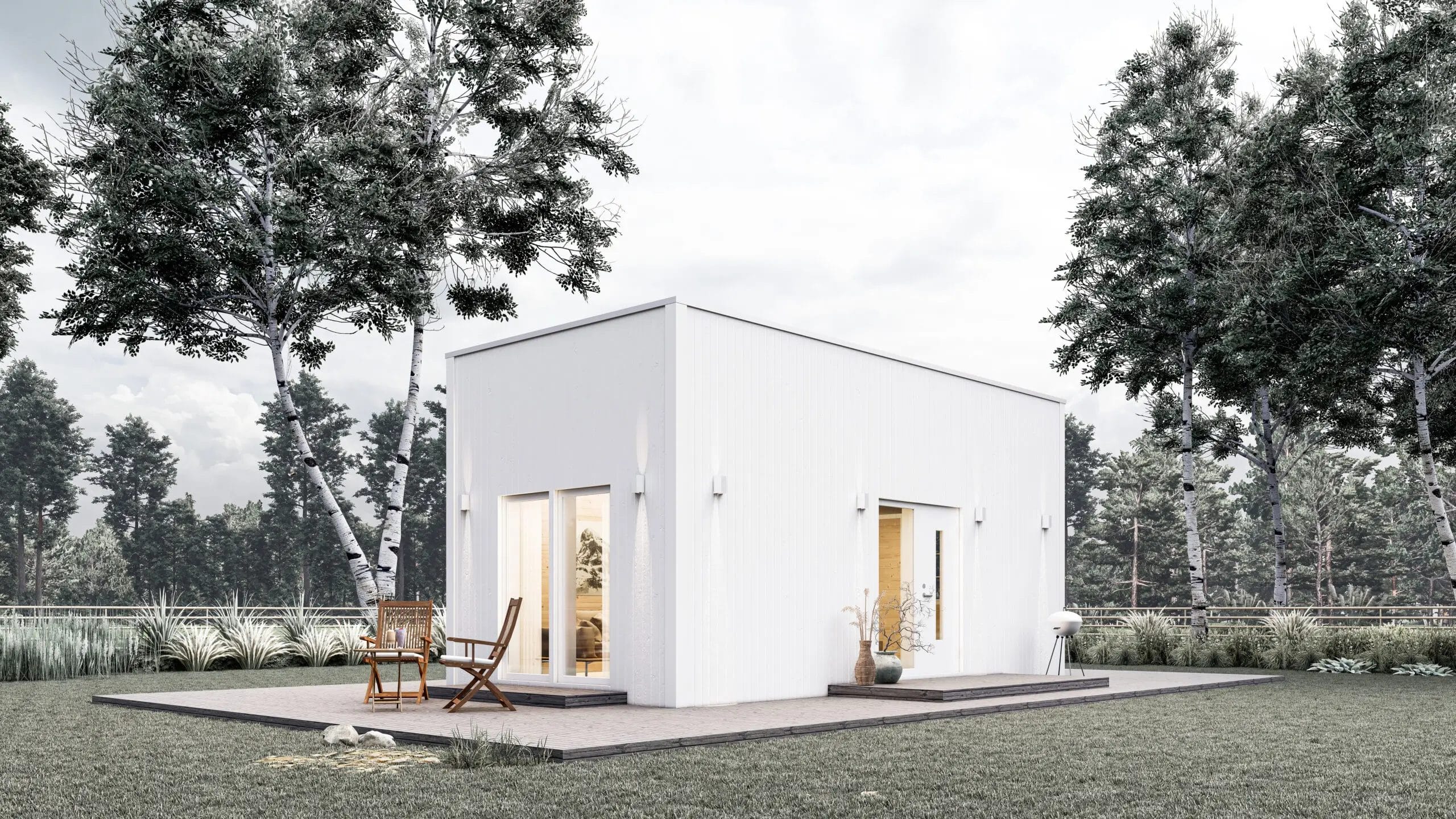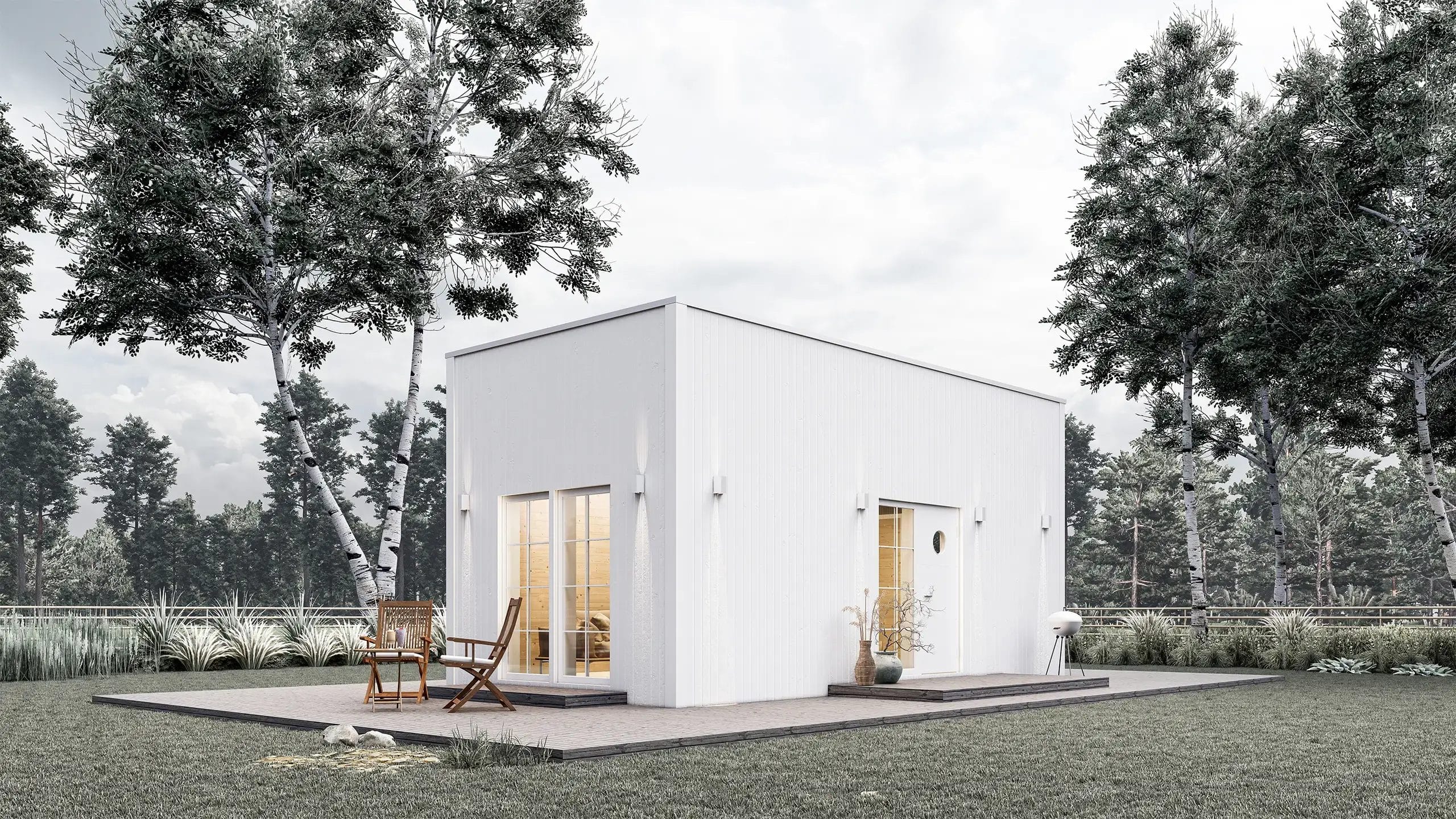Attefallshuset Saga är en klassisk och elegant modell med en väl genomtänkt design. Huset har en boarea på 23,46 kvm och ett loft på 12 kvm, vilket ger gott om plats för både boende och förvaring. Kök och allrum har en öppen planlösning med takhöjd som sträcker sig till nock, vilket skapar en rymlig känsla. Sovrummet rymmer en dubbelsäng och loftet kan nyttjas som extra sovplats eller förvaring. Saga är idealisk som gäststuga, kontor eller ett mysigt fritidshus.