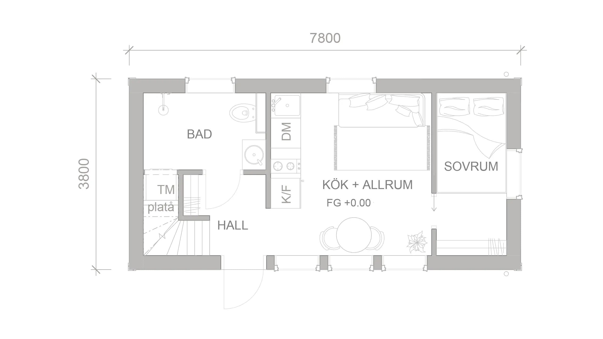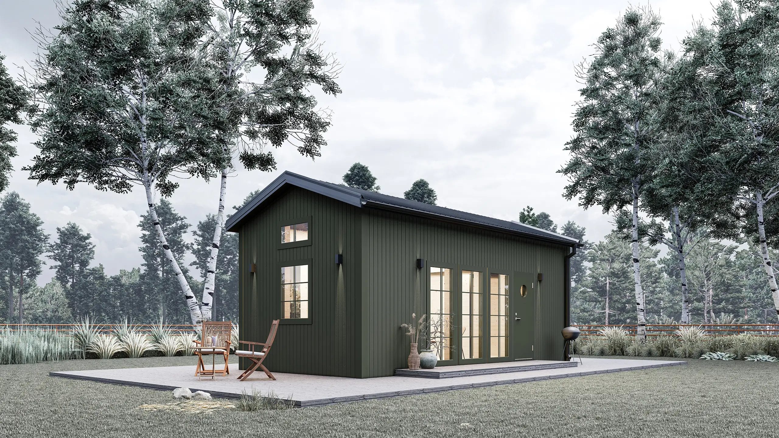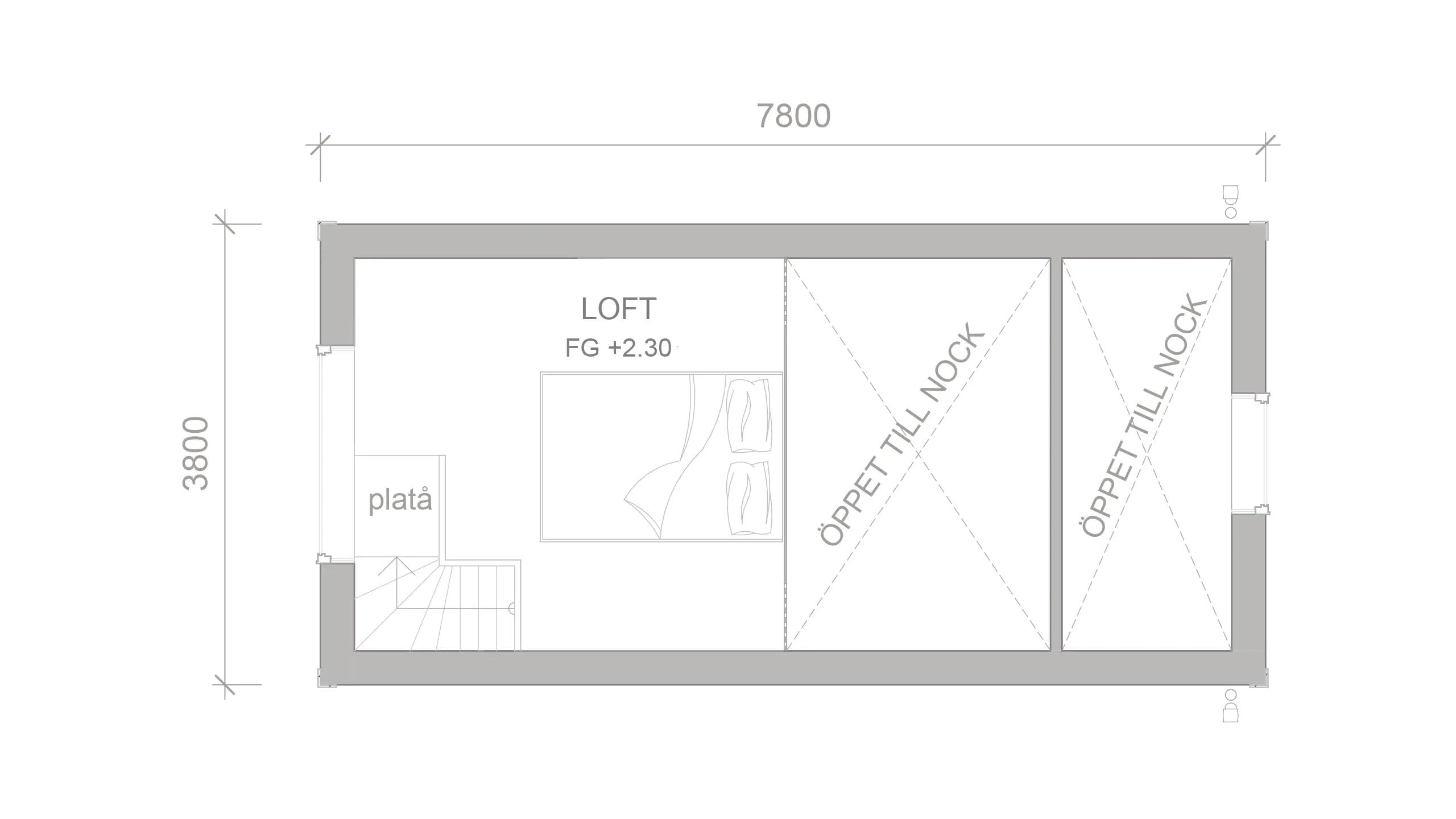 Attefallshuset Selma kombinerar klassisk estetik med moderna funktioner. Med en boarea på 23,46 kvm och ett loft på 12 kvm, erbjuder detta hus tillräckligt med utrymme för olika användningsområden. Den öppna planlösningen i kök och allrum med fönster som släpper in rikligt med ljus, skapar en ljus och välkomnande atmosfär. Loftet ger extra utrymme för en sovplats eller förvaring. Selma är perfekt för användning som gästhus, hemmakontor eller ett fritidsboende.