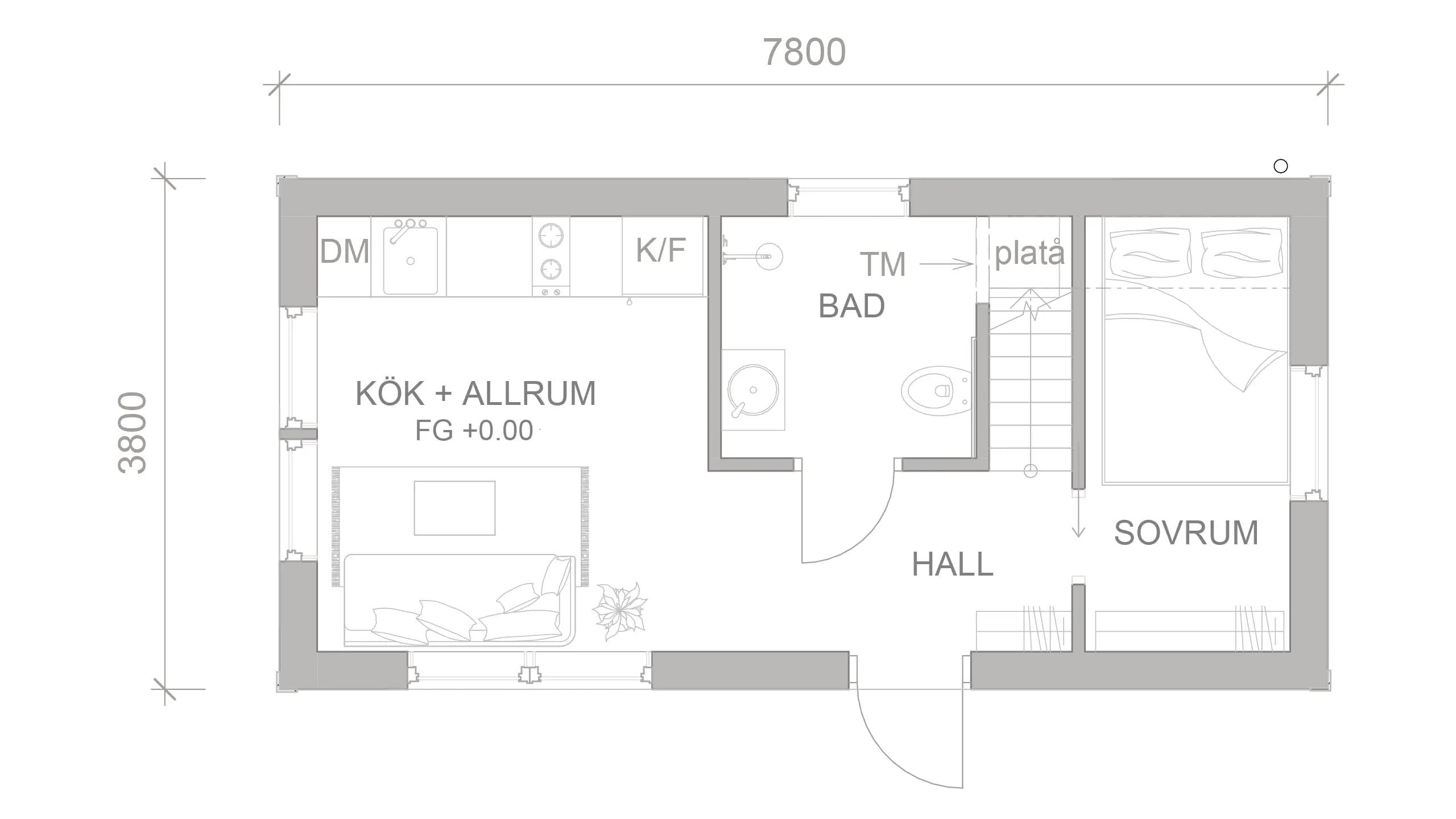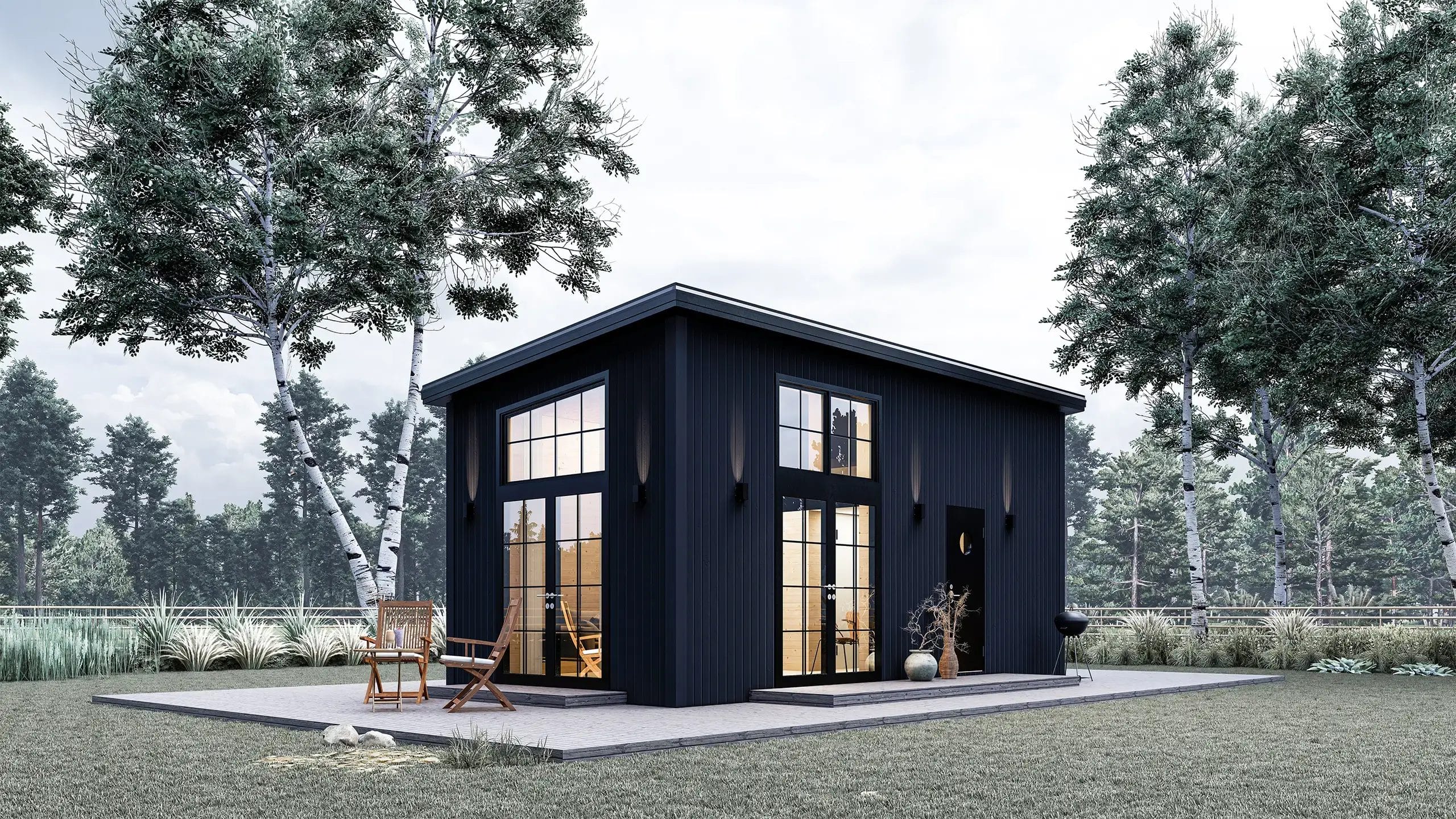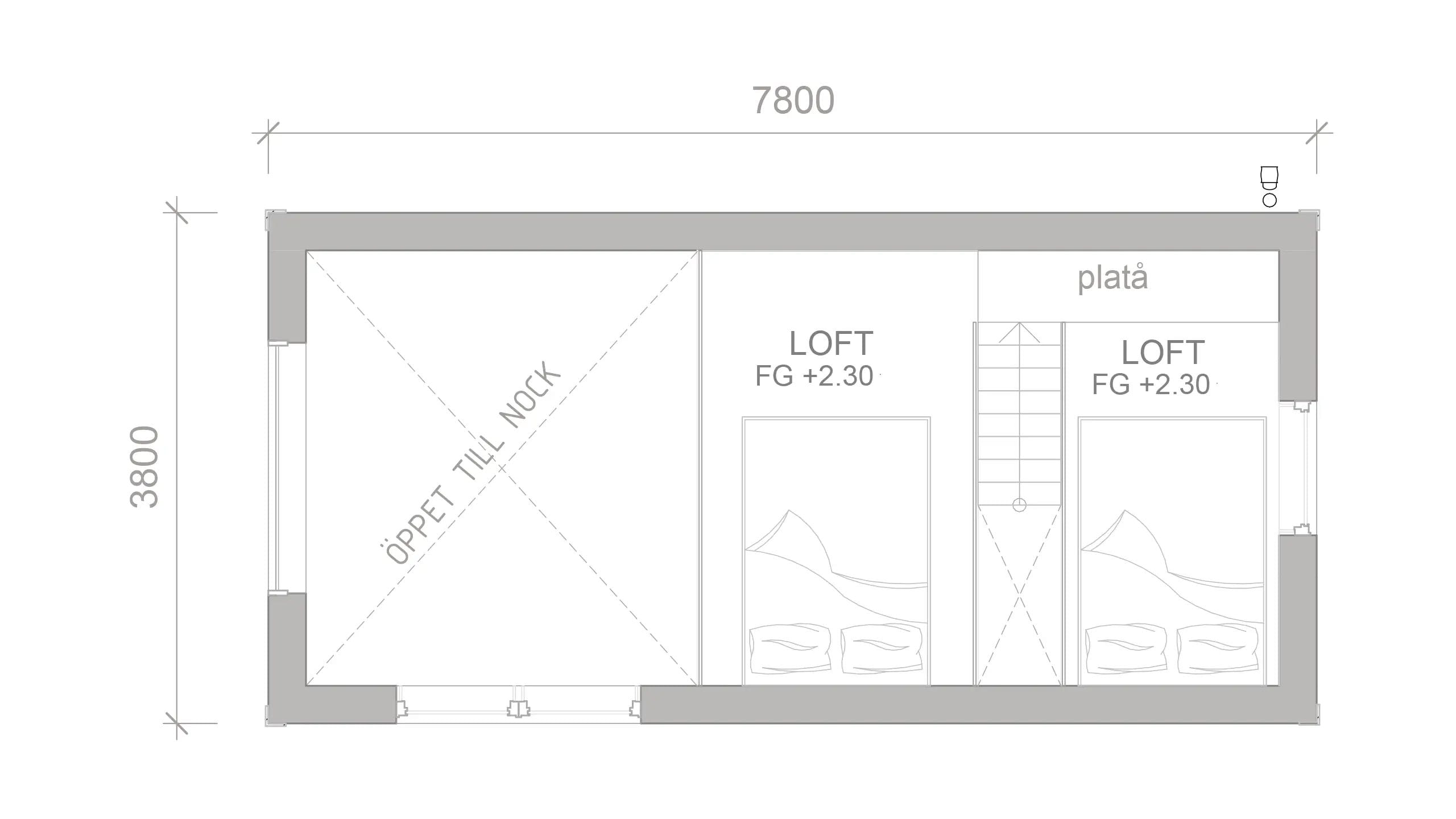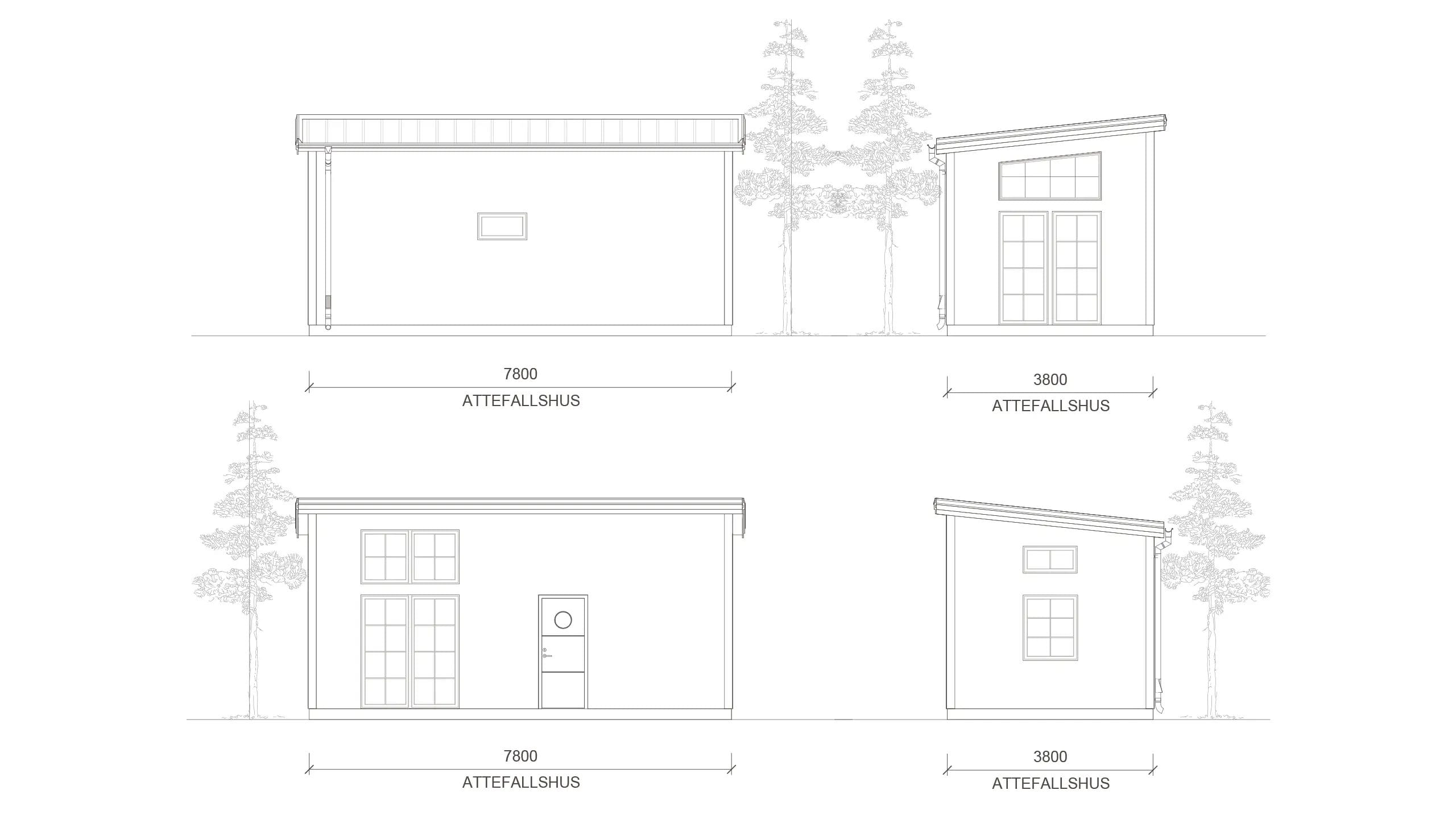 Attefallshuset Siri är en modern och flexibel bostad med en genomtänkt design. Huset erbjuder en boarea på 23,46 kvm och ett loft på 12 kvm. Med en fasad i stående träpanel och ett tak i plåt, kombinerar Siri både hållbarhet och stil. Den öppna planlösningen i kök och allrum, samt de stora fönsterpartierna, skapar en rymlig och inbjudande atmosfär. Sovrummet på bottenvåningen rymmer en dubbelsäng, och loftet ger extra utrymme för förvaring eller som sovplats. Siri är idealiskt för användning som fritidshus, gäststuga eller hemmakontor.