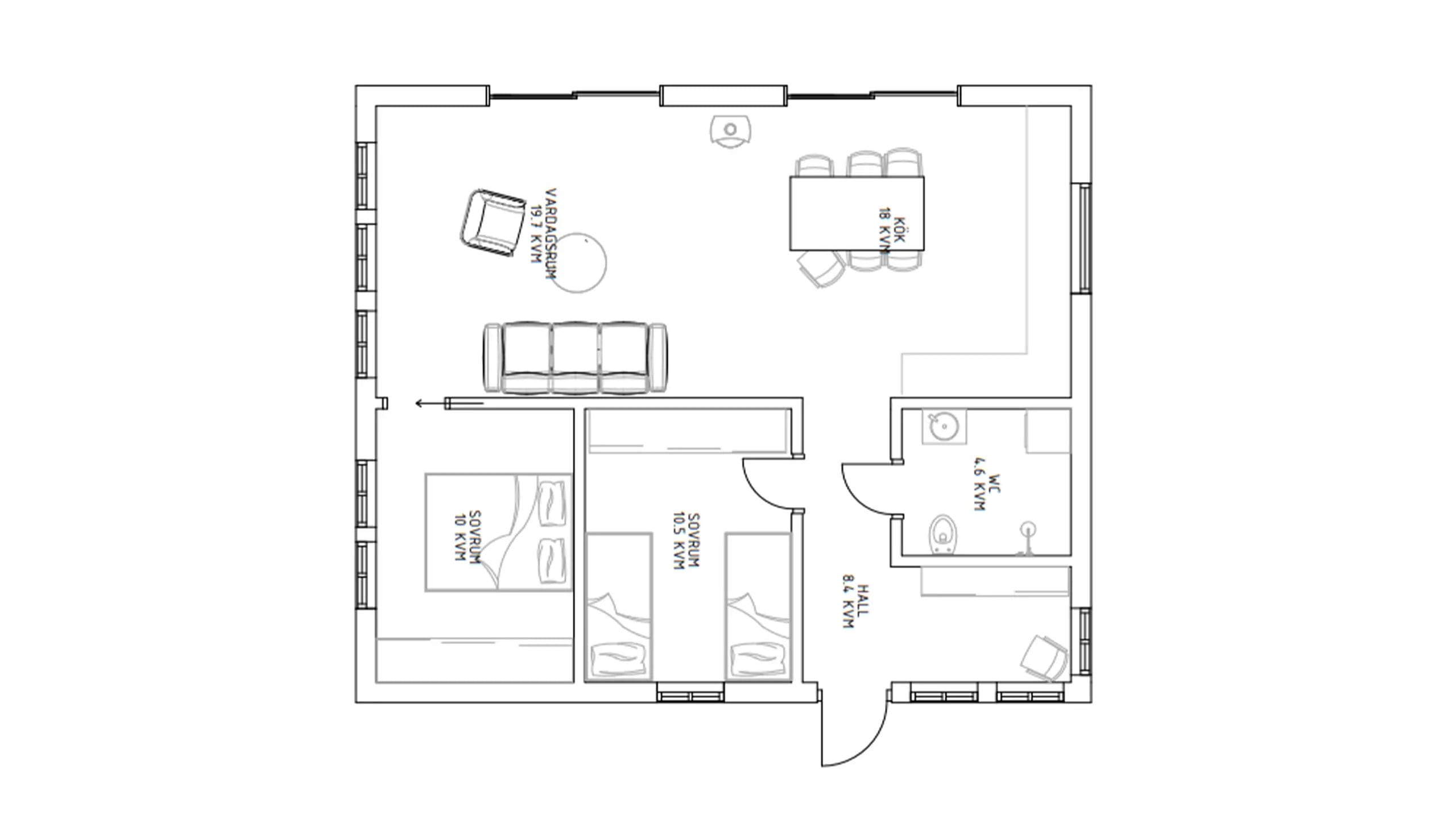 Viktor är ett fritidshus på 66,5 kvm (BOA), idealiskt för den som söker ett mindre, men välplanerat hem. Med tre sovrum och en öppen planlösning mellan kök och vardagsrum, utnyttjas varje kvadratmeter på bästa sätt. Modellen har en takhöjd på 3,9 meter och stora fönsterpartier som bidrar till en ljus och öppen känsla. Viktor är utformad för att passa in i både lantliga och naturnära områden och erbjuder en perfekt kombination av funktionalitet och komfort.